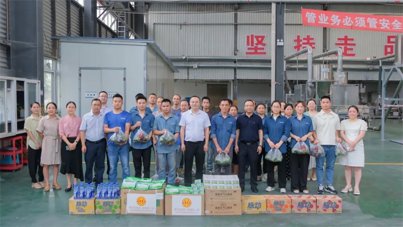 慰問組一行先后來到天億新材料、鋰電新材生產(chǎn)現(xiàn)場,看望慰問奮戰(zhàn)在高溫一線的職工,為他們送去防暑降溫用品和清涼飲料,對大家不畏酷暑、無懼辛苦的辛勤付出表示衷心感謝,叮囑大家在高溫期間,強化安全意識和自我保護意識,確保生產(chǎn)安全和人身安全。